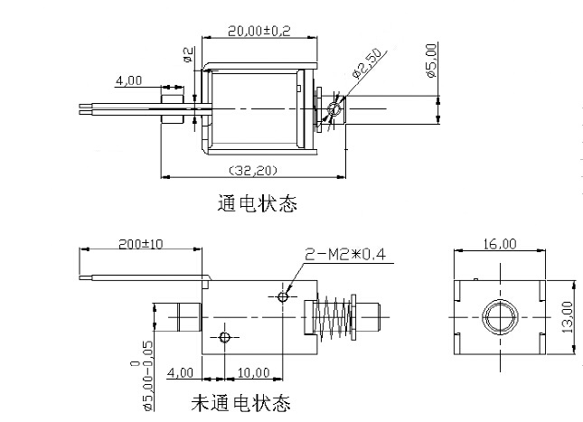 一、U0520微型推拉電磁鐵的尺寸圖: